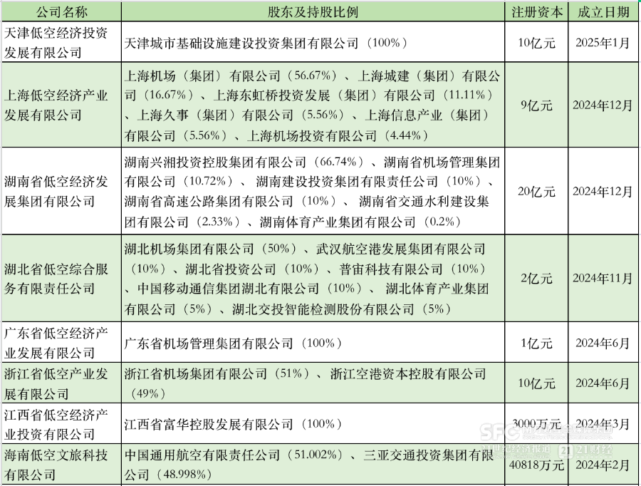 2025年以来,天津低空经济投资发展有限公司、内蒙古陆港低空产业有限公司等地方国企先后成立。