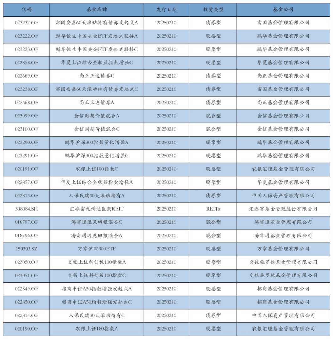 昨日有24只新基金发行,分别为:富国安嘉60天滚动持有债券发起式A、鹏华恒生中国央企ETF发起式联接A、鹏华恒生中国央企ETF发起式联接C等,详情见下表: