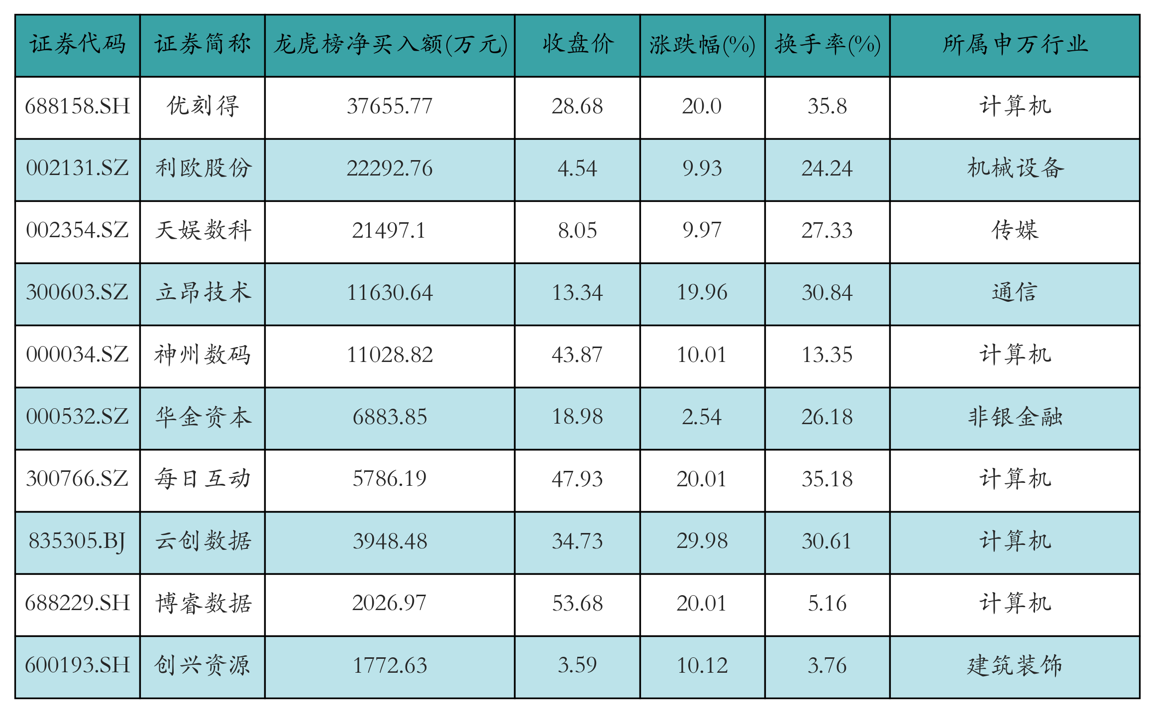 昨日龙虎榜营业部净买入额前10详情见下表: