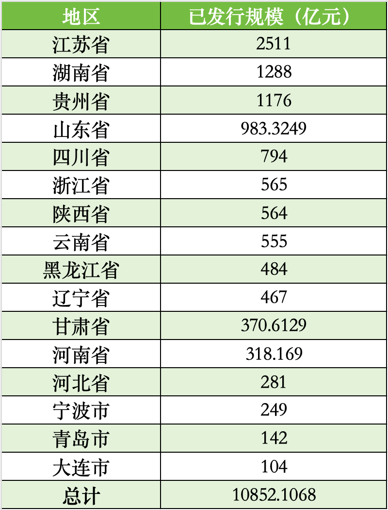 截至目前各地用于置换存量隐性债务的再融资专项债券披露情况数据来源:中国债券信息网