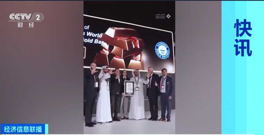 据央视财经11月23日报道,11月19日,在迪拜闭幕的一场国际盛会上,阿联酋铸币厂惊艳亮相,展示了一块重达300公斤的巨型金条。据吉尼斯世界纪录官网认证,此金条已荣登全球最大金条宝座,并被正式载入《吉尼斯世界纪录》史册。