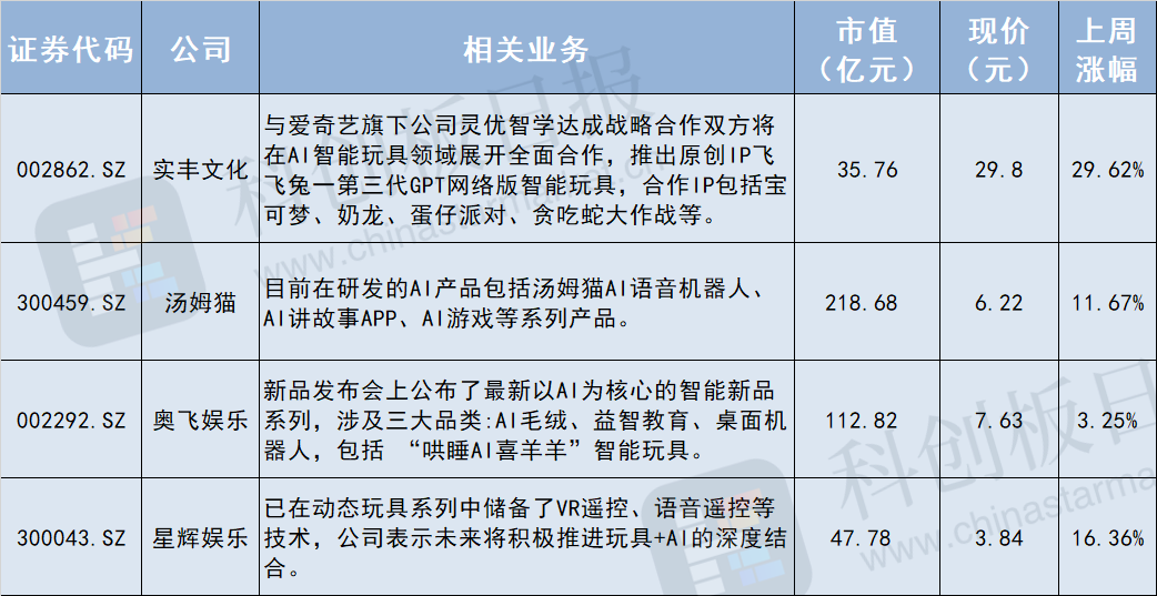 据不完全梳理,多家A股上市公司已布局AI玩具市场,其中实丰文化已在上周成功晋级三连板。