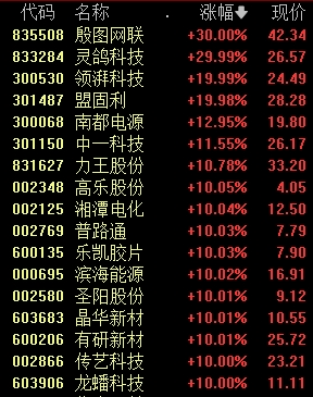 固态电池概念股表现抢眼,多只股票如盟固利、湘潭电化、普路通和滨海能源等纷纷涨停。有研新材更是领涨板块。