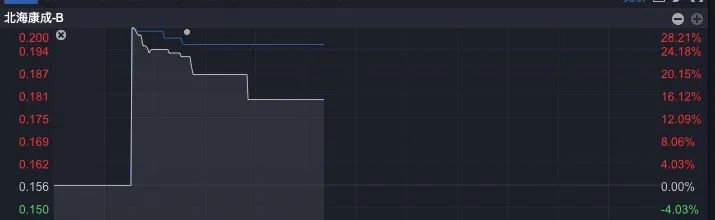 同样在上午表现出色的还有北海康成-B(01228.HK),其股价上涨了15.38%。