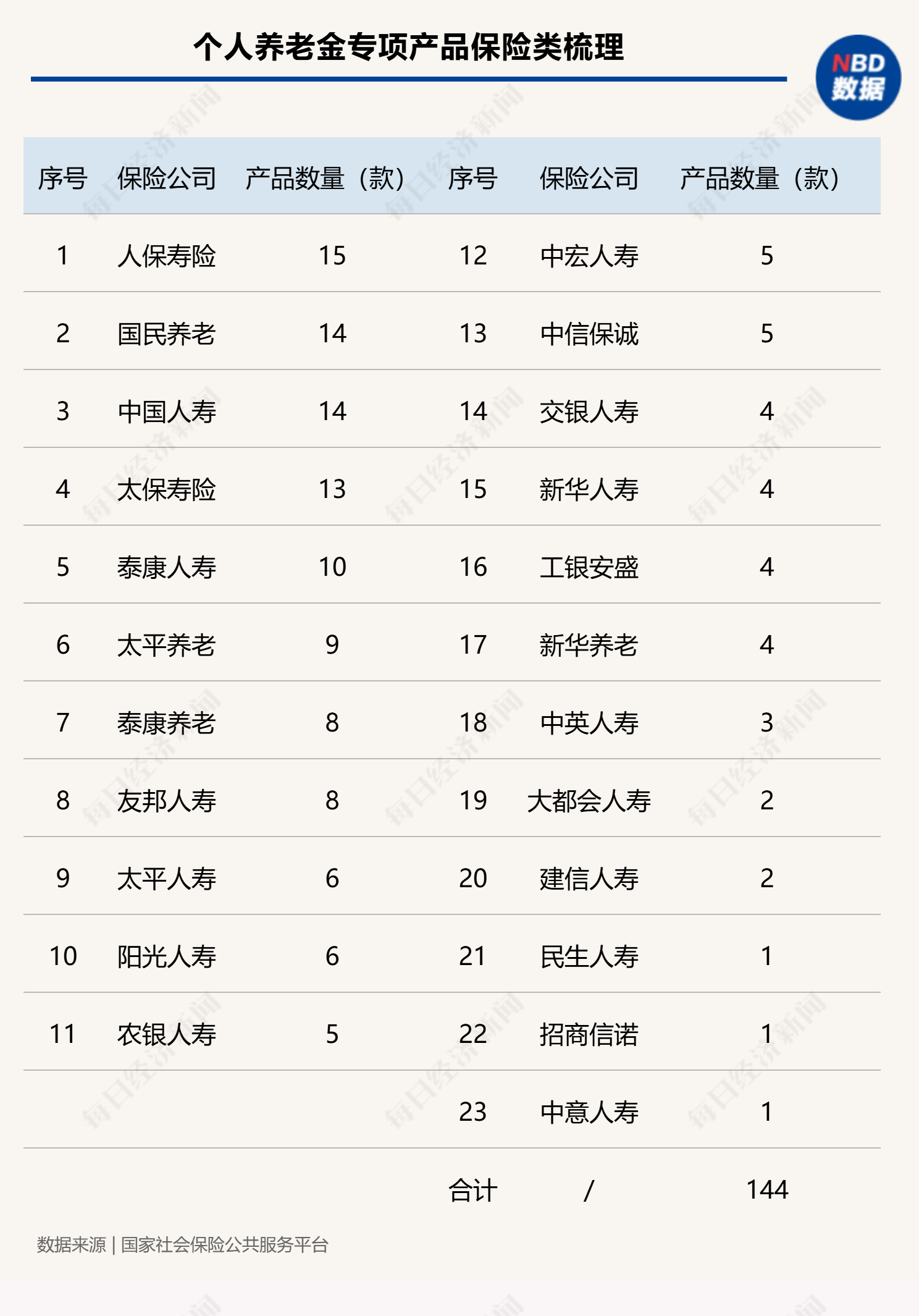 目前,已有23家公司推出了144款个人养老金保险产品,种类和数量持续扩容。太平人寿表示,保险产品长期性的特点与个人养老金制度高度契合,为客户提供了规避市场风险的途径。