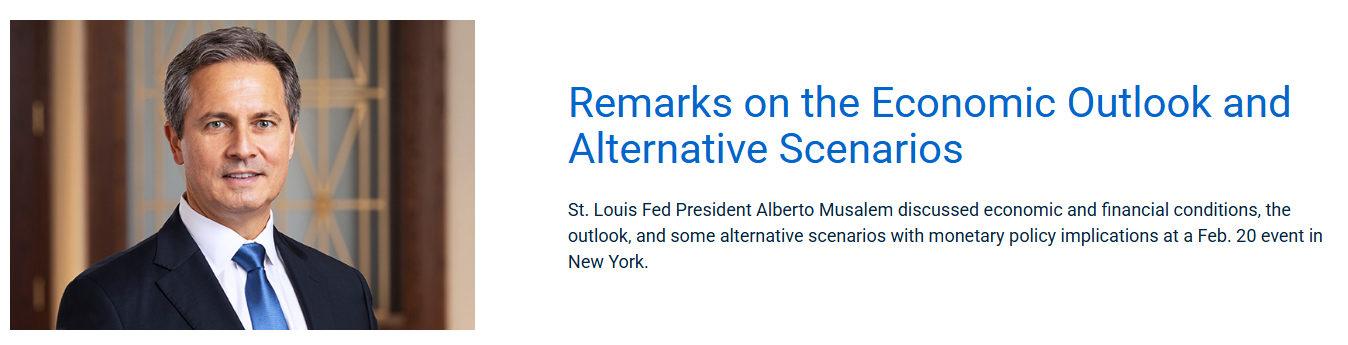 当地时间周四(2月20日),圣路易斯联储在官网发布了穆萨莱姆参加纽约经济俱乐部活动的讲稿。讲稿中,穆萨莱姆表达了对美国通胀预期上升的担忧,认为这可能迫使美联储采取更严格的货币政策。