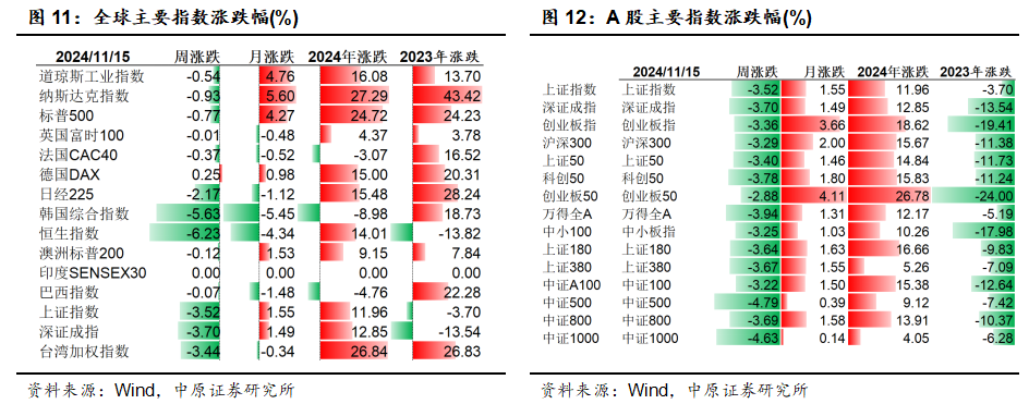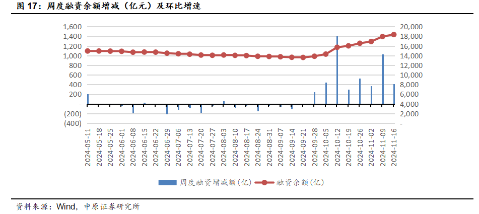 中央出台10万亿化债政策,10月M1、M2企稳回升,社融数据偏弱,CPI小幅回落,PPI环比降幅收窄,工业增加值保持稳定,美国通胀符合预期。经济数据未达预期,市场等待震荡回升,建议关注券商、非银金融、半导体等板块。