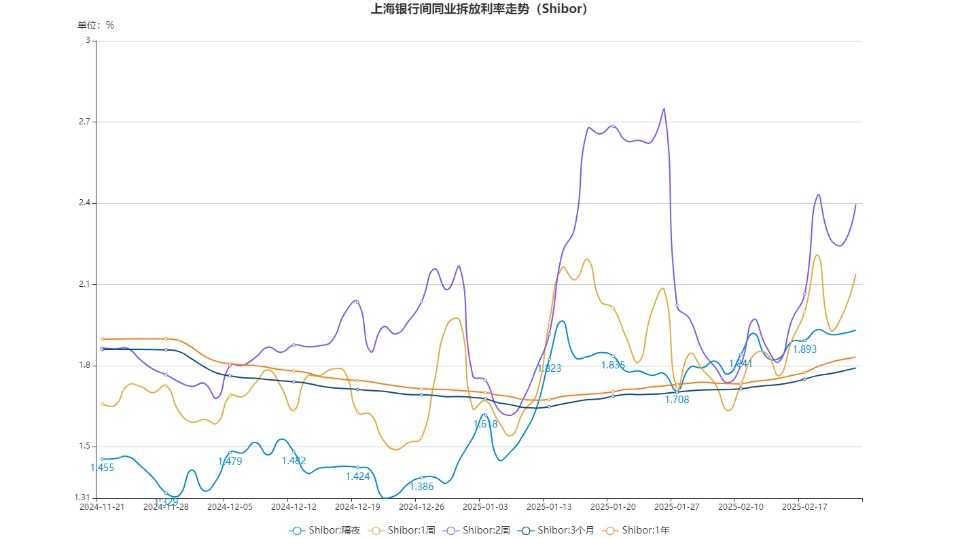 人民银行进行1825亿元7天期逆回购操作,公开市场实现净投放840亿元。上海银行间同业拆放利率短期品种普涨,银行间质押式回购市场各品种利率继续上行。国家金融监督管理总局发布银行业保险业监管指标,小微企业贷款余额大幅增长。