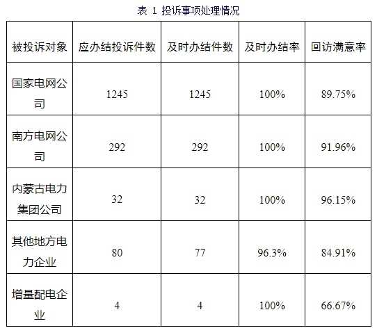 电力领域是投诉的主要领域,占比超过九成。能源企业在1月份应办结投诉1653件,实际及时办结1650件,及时办结率高达99.8%,回访满意率为90.1%。