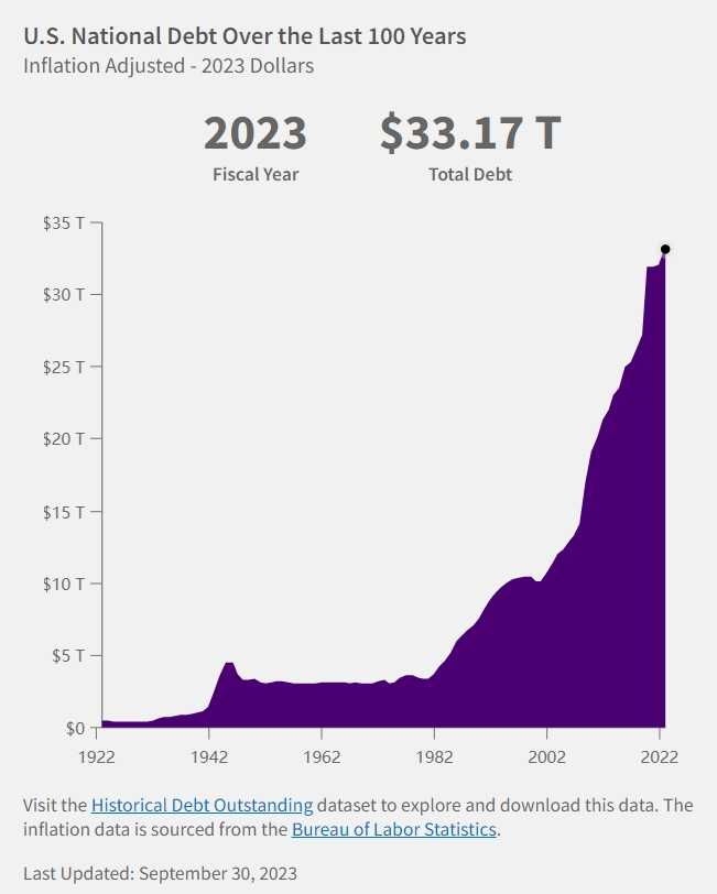 根据美国财政部官网的最新数据,截至今年9月,美国国债规模已攀升至33.17万亿美元,自2020年新冠疫情爆发以来激增了45%,其中约27万亿美元由公开市场持有。此外,为资助一系列财政投资政策,美国政府去年新增赤字高达1.7万亿美元。在美联储加息的背景下,2023财年美国政府支出的净利息成本已攀升至6590亿美元。