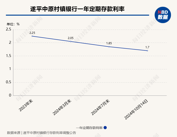 此外,部分银行年内已数次降息。河南遂平中原村镇银行自10月15日起,一年期存款利率降至1.70%,年内已三次调降,前两次分别在4月1日和8月1日。其他期限存款利率也均有所下降。
