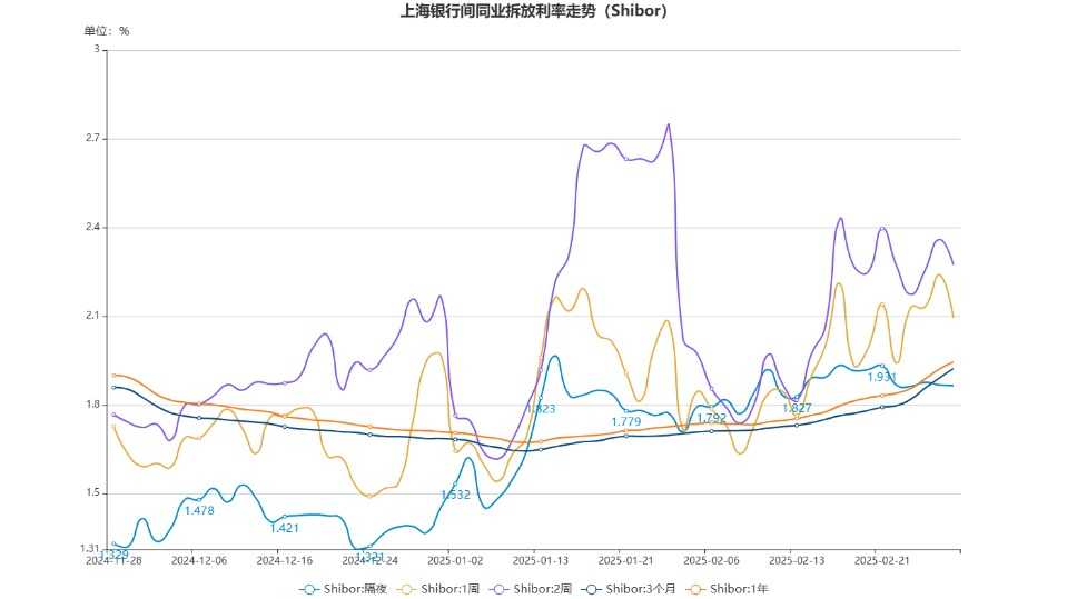 上海银行间同业拆放利率(Shibor)短端品种整体走低,其中7天品种回落近15个基点(BP)。具体来看,隔夜Shibor下跌0.20BP至1.8650%,7天Shibor下跌14.70BP至2.0930%,14天Shibor下跌8.60BP至2.2730%。
