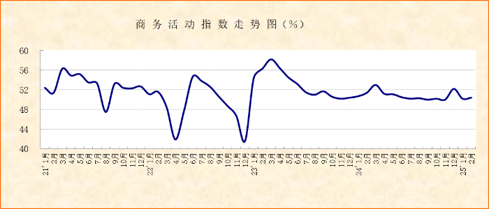 3月1日,国家统计局数据显示,2月制造业采购经理指数(PMI)为50.2%,较上月上升1.1个百分点;非制造业商务活动指数为50.4%,较上月上升0.2个百分点;综合PMI产出指数为51.1%,较上月上升1.0个百分点。