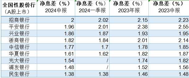 2024半年报揭示:银行业稳息差挑战持续,多家银行二季度息差环比改善