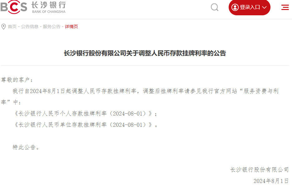 继国有大行及股份制银行宣布下调存款利率后,多地城商行、农商行等中小银行也迅速响应,纷纷下调存款利率。8月1日,长沙银行发布公告,宣布对存款挂牌利率进行下调,降幅在10至20个基点之间。同时,广西、广东、黑龙江等地的农商行、农信社等金融机构也自8月1日起下调存款挂牌利率,部分银行下调幅度甚至高达70个基点。