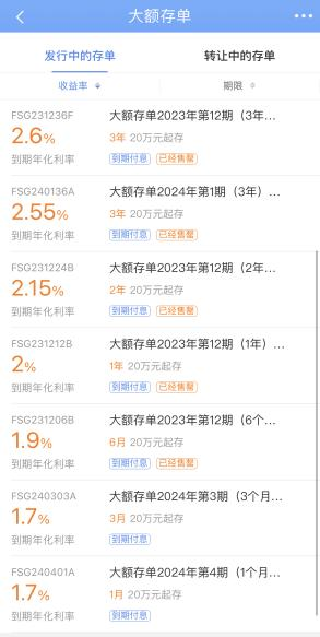 5月7日,记者通过民生银行App发现,该行目前仅提供1个月和3个月期限的大额存单,其余期限产品均已售罄。