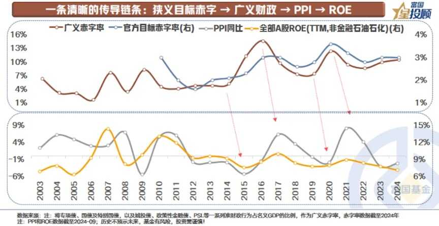 ②财政政策本质:狭义目标赤字 → 广义财政 → PPI → ROE