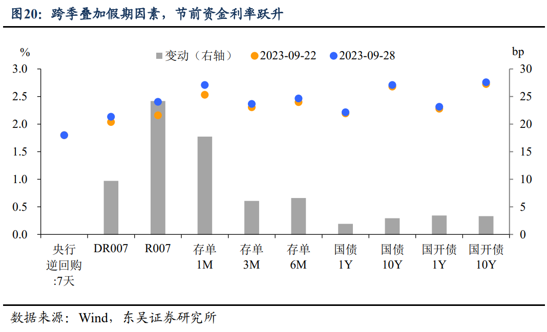 流动性方面,节前资金面偏紧,跨季叠加假期效应推升资金利率,票据利率整体呈中枢回升趋势,或反映信贷投放节奏边际加快。预计节后资金面将持续偏紧,信贷反弹力度有待观察。同时,文章也提示了东盟等新兴经济体经济增长不及预期、欧美经济超预期陷入衰退以及政策出台过慢等风险。