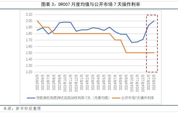 2月月度平均利率走高,DR007与7天逆回购利率利差较大。分析人士指出,央行要提高资金使用效率,防范资金空转。监管层遏制长债收益率下行,资金面偏紧,利率中枢上行。