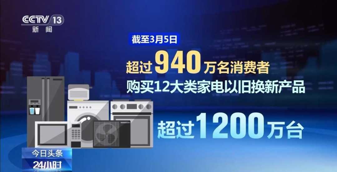 商务部数据显示,截至3月5日,超过940万名消费者购买12大类家电以旧换新产品超过1200万台,超过3400万名消费者申请了超过4200万件手机等数码产品购新补贴。