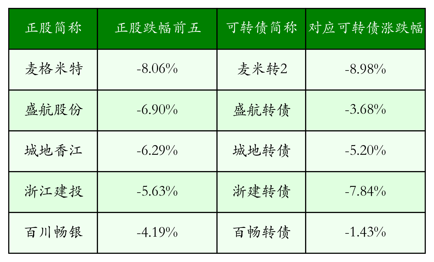 然而,市场并非全然乐观。今日有4只可转债对应的正股跌幅超过5%,尽管未出现正股跌停的情况,但仍需警惕市场潜在的风险。