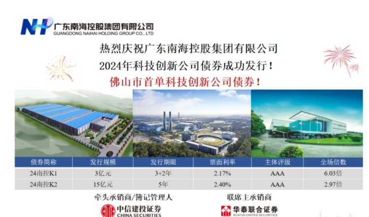 11月19日,南方财经全媒体记者从广东南海控股集团有限公司(下称“南控集团”)处了解到,该集团成功发行了佛山市首单科技创新公司债券,发行总额高达18亿元,刷新了南控集团的历史记录。这笔资金将专项用于支持科技创新领域,推动南控集团引领新南海产业升级,实现高质量发展,致力于成为“湾区一流、国内知名”的产城融综合国有投资集团。