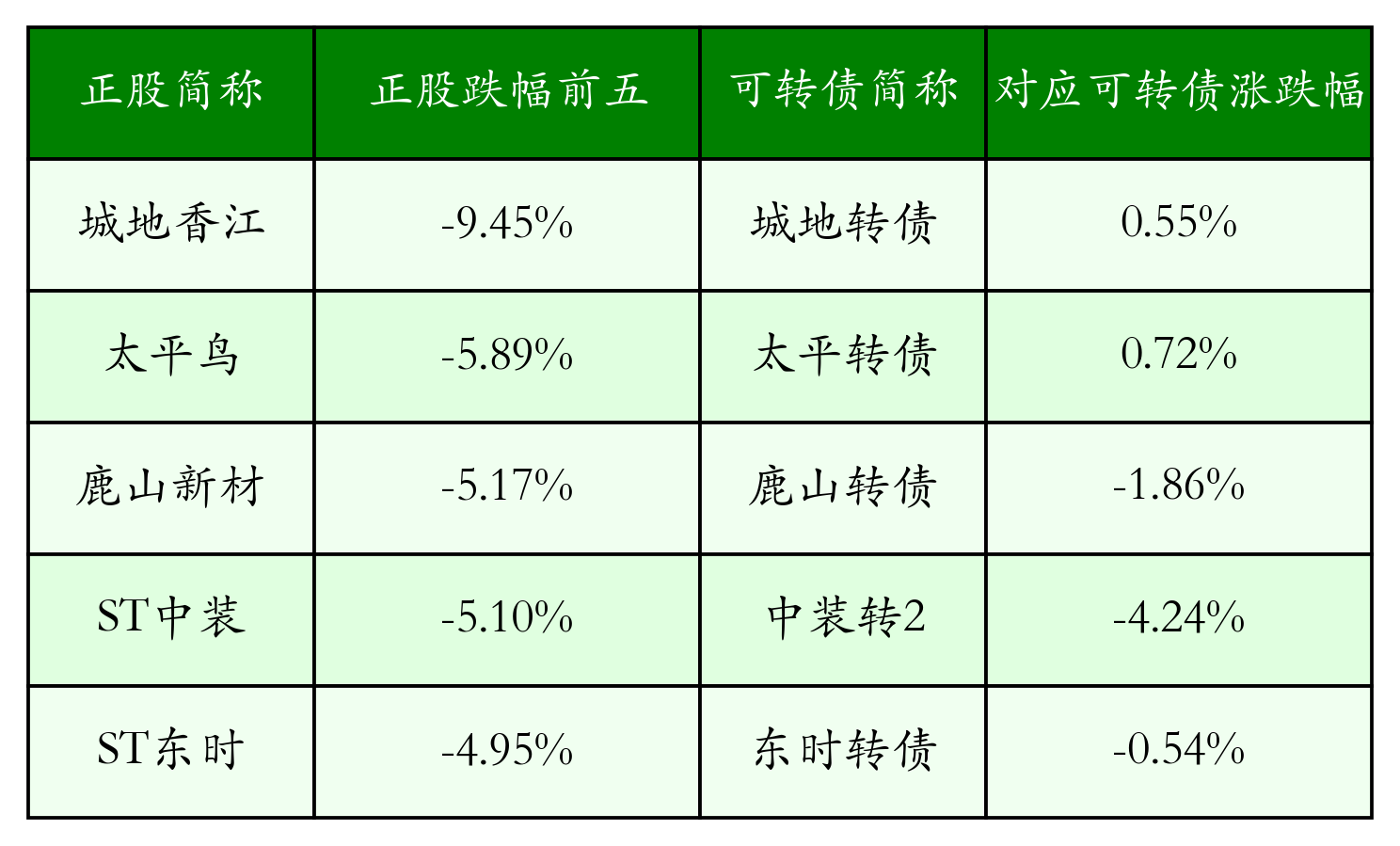 然而,市场并非一片涨声,有4只可转债对应正股跌幅超过5%,但幸运的是,没有正股跌停,市场整体风险可控。