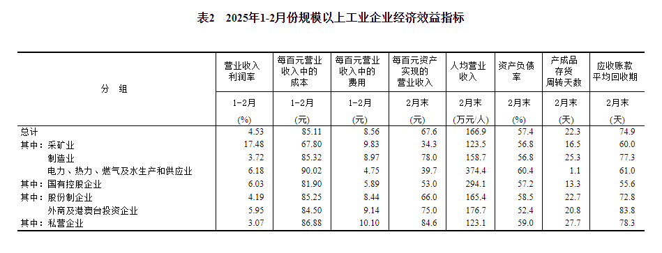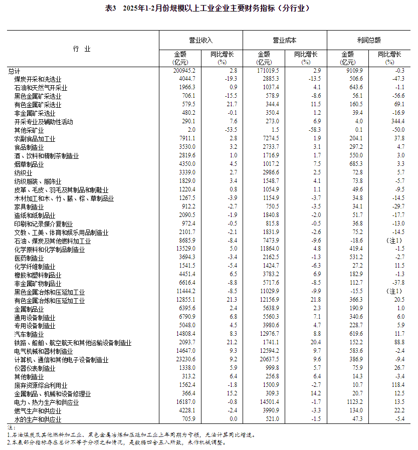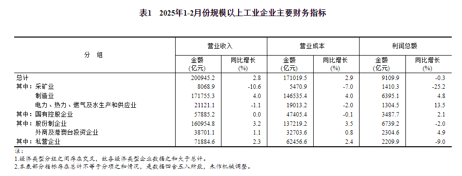 1—2月份,全国规模以上工业企业实现利润总额9109.9亿元,同比下降0.3%(按可比口径计算)。这一数据反映了当前工业企业的盈利状况,对于分析国内经济形势具有重要意义。