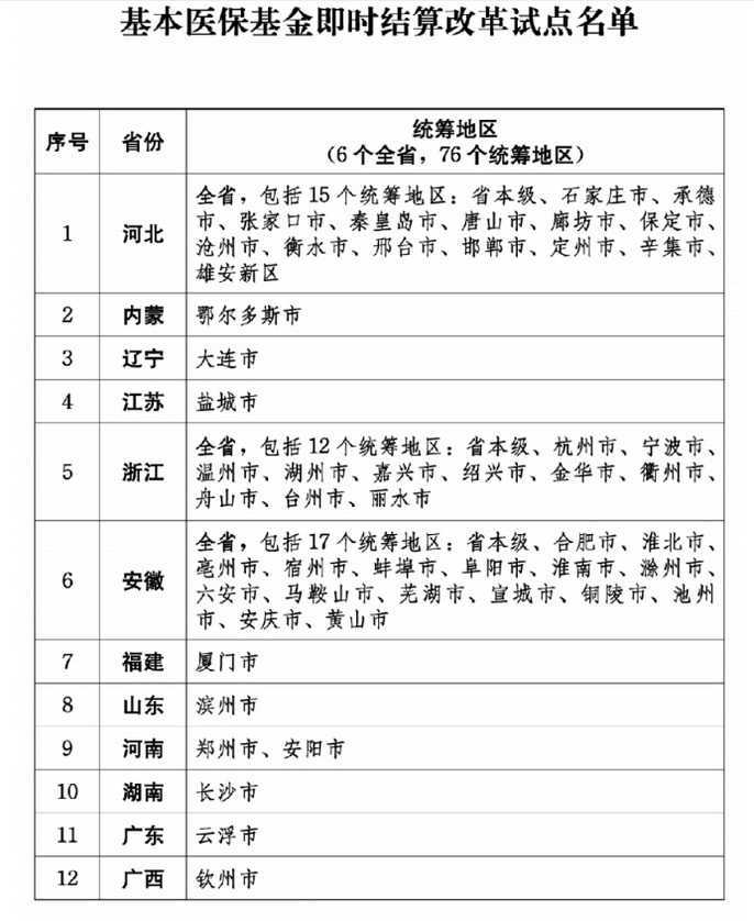 今年1月,国家医保局将6个全省、76个统筹地区列为即时结算的国家试点名单,河北省包括省本级的15个统筹区全部纳入国家试点。