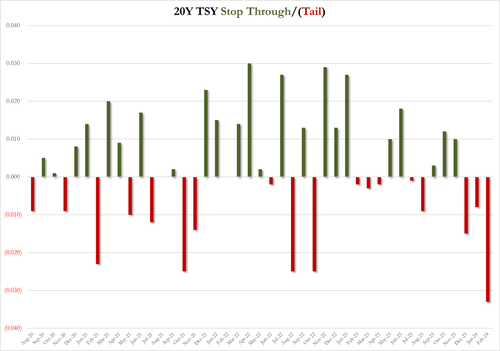 投资者对20年期国债兴趣寥寥,迅速引发了对接下来大量国债发行需求的担忧。此次20年期美债标售的得标利率为4.595%,高于预发行利率4.562%,尾部利差高达3.3个基点,为2020年5月以来最大。投标倍数为2.39,显著低于前次的2.53,也大幅低于最近六次拍卖的平均水平2.59。