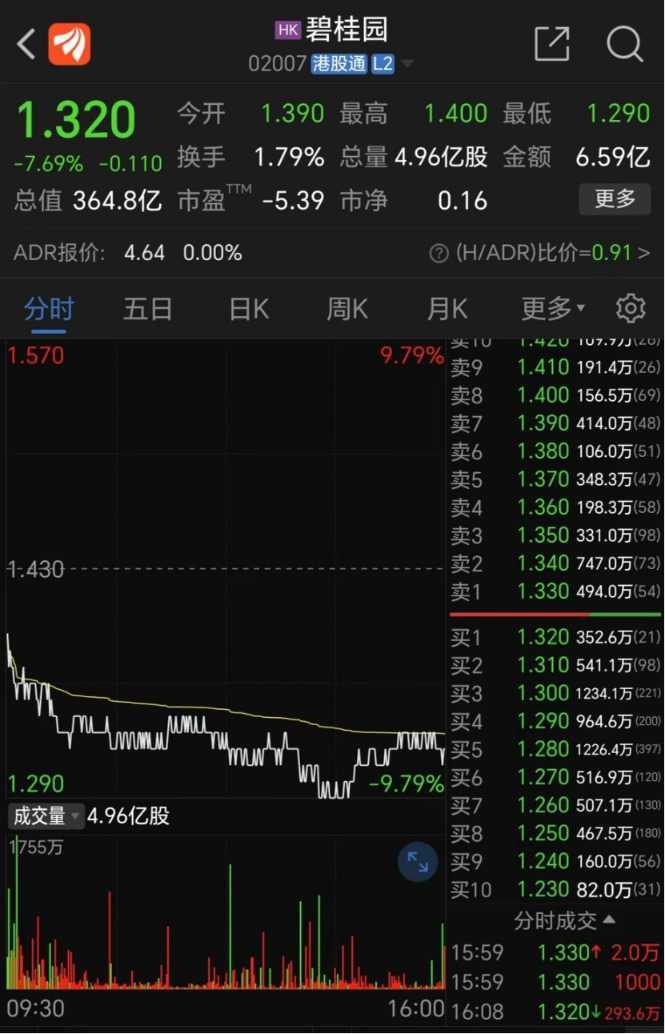 碧桂园和碧桂园服务的股价持续下跌,截至8月7日,碧桂园报收1.32港元/股,下跌7.69%,市值已降至365亿港元;碧桂园服务报收8.99港元/股,下跌7.32%,市值303亿港元。碧桂园旗下的多只境内债券也均大幅下跌,市场反应强烈。