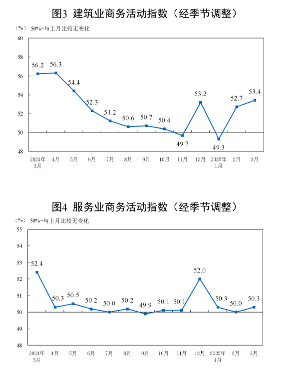 3月份中国制造业采购经理指数(PMI)为50.5%,较上月增长0.3个百分点;非制造业商务活动指数为50.8%,扩张步伐加快。数据表明,制造业与非制造业活动均呈现扩张态势,显示经济回暖趋势。