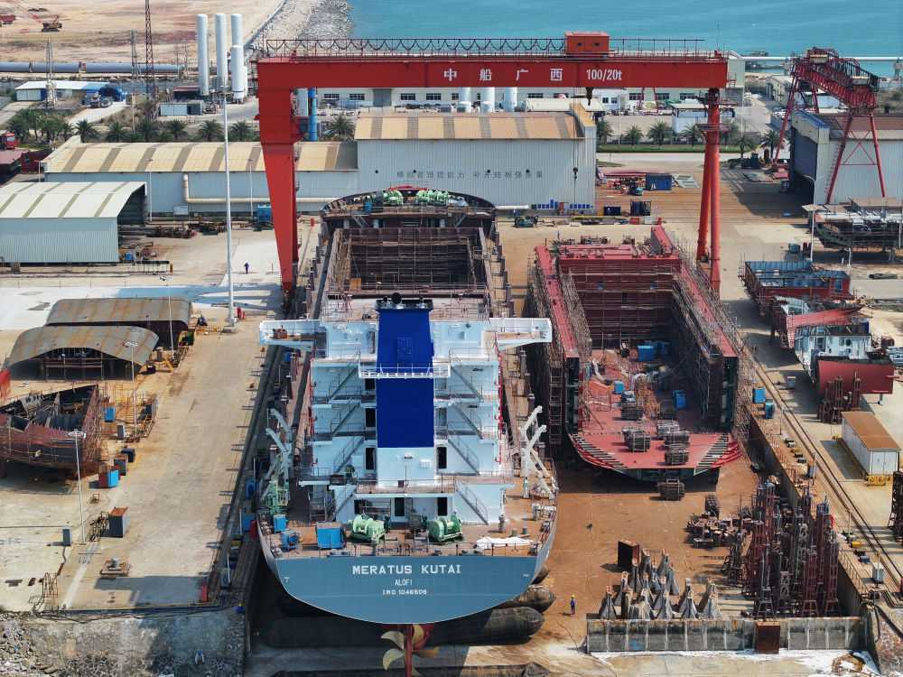 中国船舶集团广西造船有限公司船舶建造现场(3月20日摄,无人机照片)。新华社记者周华摄