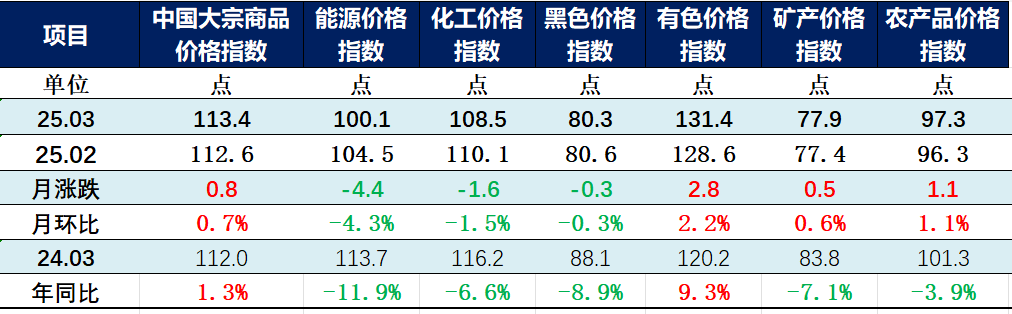 3月中国大宗商品价格指数环比上涨,有色金属价格走高
