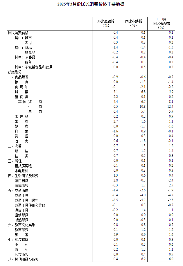 2025年3月份居民消费价格及工业生产者价格变动情况解析