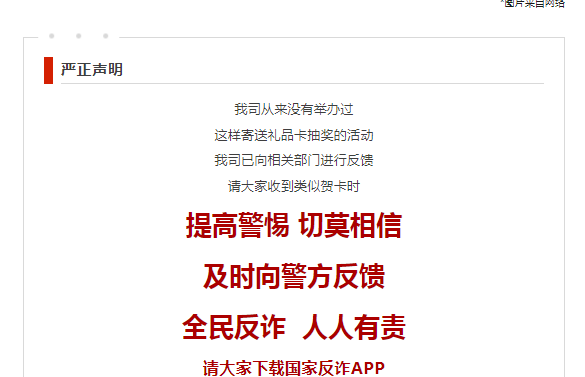 格力严正声明:我司从未举办过寄送礼品卡抽奖的活动。
