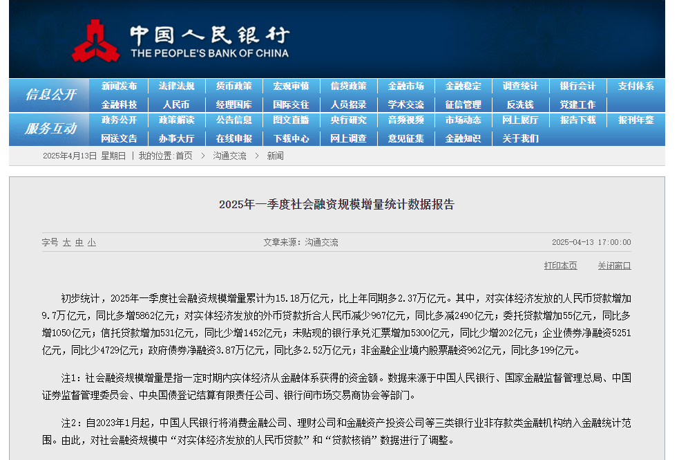 2025年3月金融数据超预期,企业居民信贷需求回暖