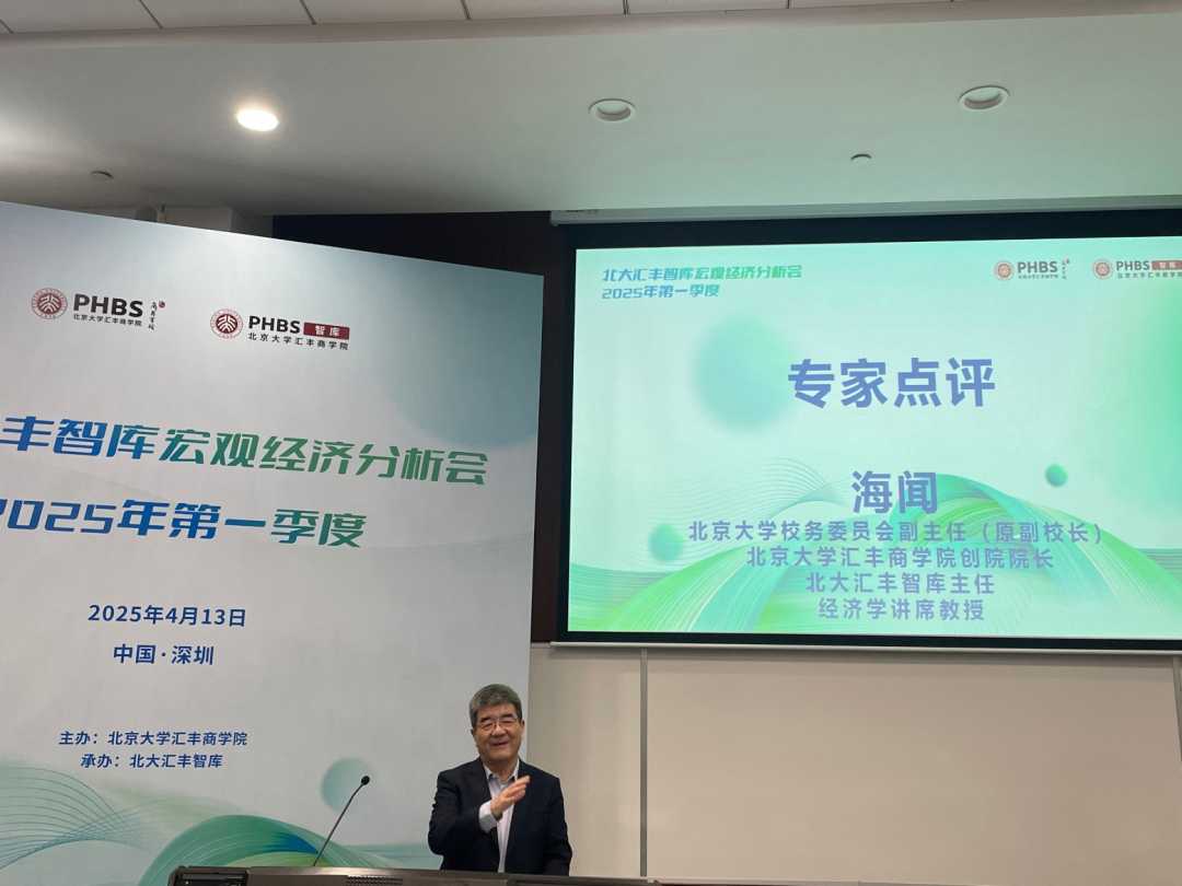4月13日下午,北京大学汇丰商学院首次举办北大汇丰智库宏观经济分析会(2025年第一季度)。会上,北大汇丰智库发布了《北大汇丰智库2025年一季度宏观和湾区经济分析》系列报告。著名经济学家,北京大学校务委员会副主任、北京大学汇丰商学院创院院长、北大汇丰智库主任海闻教授对报告进行了点评。他提出:当前中美关税战是经济转型契机,应推动发展模式从追求产能规模向提升国民生活品质转变,促进大湾区经济发展。