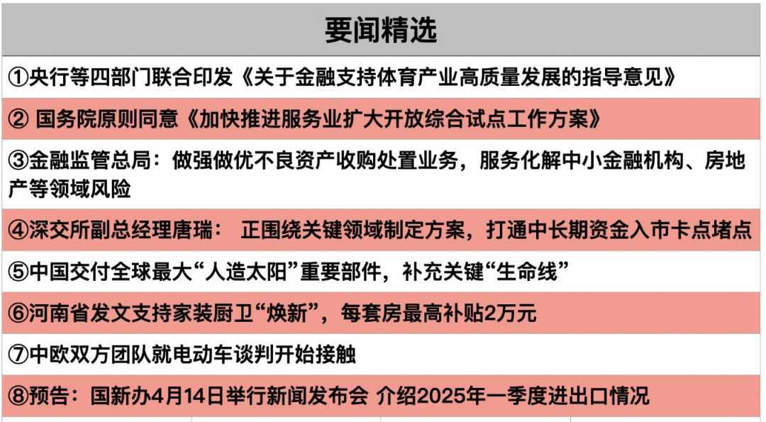 本文聚焦关税调整、3月金融数据概览及商业航天发展等热点。提及美国进口商品关税税率调整、央行金融数据概览、商业航天全产业链快速发展及金融支持体育产业高质量发展等信息。