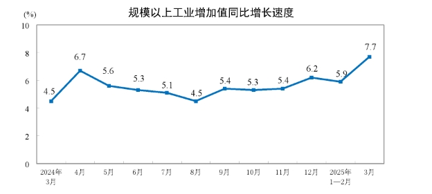 国家统计局公布3月规模以上工业增加值增长7.7%