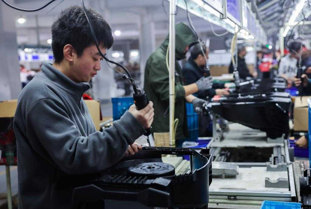 图为3月11日,宁波好使特电器有限公司车间内工人正在组装一批出口的园林工具,展示了企业的生产活力。新华社记者徐昱摄