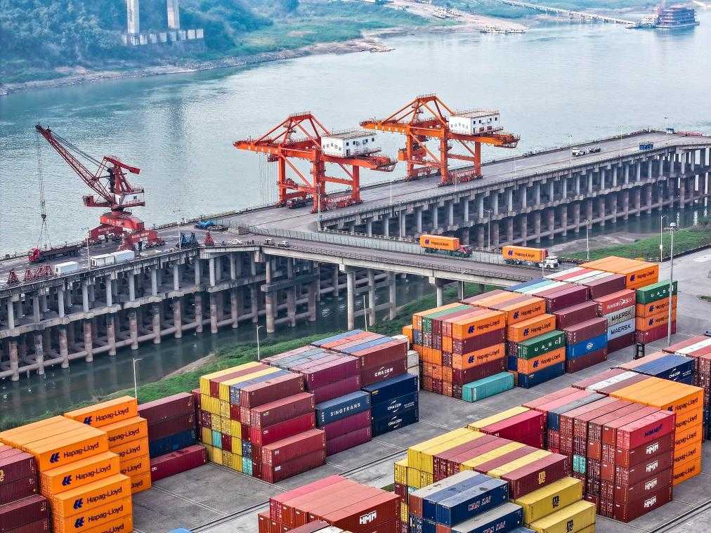 图为2月25日拍摄的重庆两江新区果园港,展示了中国外贸的蓬勃活力。新华社记者唐奕摄