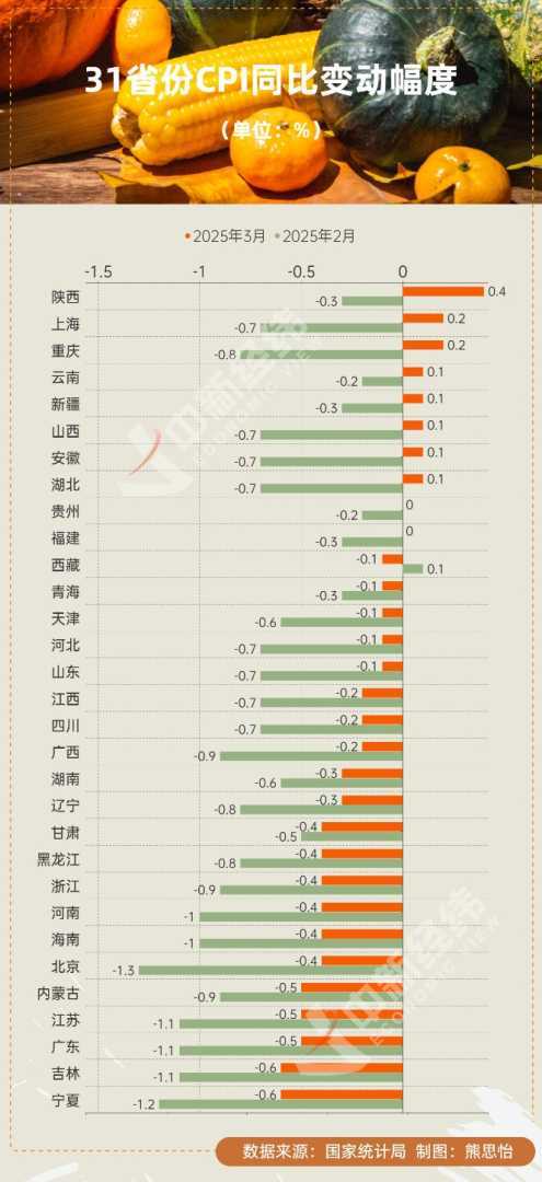 国家统计局正式揭晓31省份2025年3月居民消费价格指数(CPI)数据。
