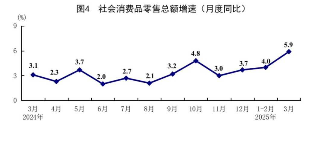 去年9月26日,中央政治局会议果断部署了一揽子增量政策,对稳定经济发挥了关键作用。今年宏观政策更加积极有为,前期出台的宏观政策和增量政策叠加发力,有效扩大了需求、促进了生产、激发了活力、增强了信心。3月份,社会消费品零售总额同比增长5.9%,增速创一年来新高。