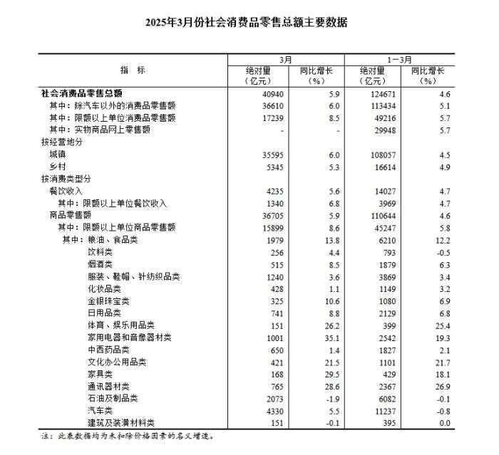 3月社会消费品零售总额增长5.9%,消费市场稳步复苏