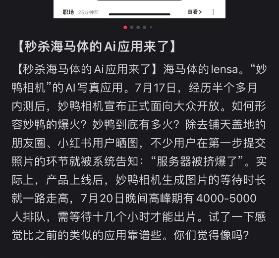 妙鸭相机利用AI技术,通过学习用户上传的照片构建人脸模型,再与其他模型合成新的照片,包括不同的发型、妆容、衣服和场景。这一功能吸引了大量用户,并收获了广泛好评。