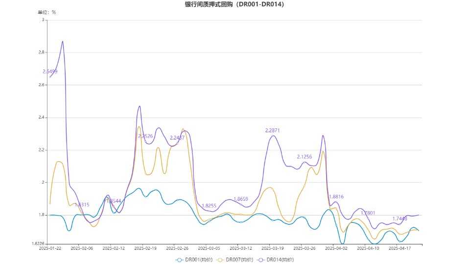 银行间质押式回购市场方面,隔夜和7D品种下跌,14D品种小幅上涨。具体看,DR001、R001加权平均利率下行2.1BP,报1.7033%;DR007、R007加权平均利率下行0BP,报1.7079%;DR014、R014加权平均利率上行0.8BP,报1.8015%,这些数据反映了货币市场利率的动态。