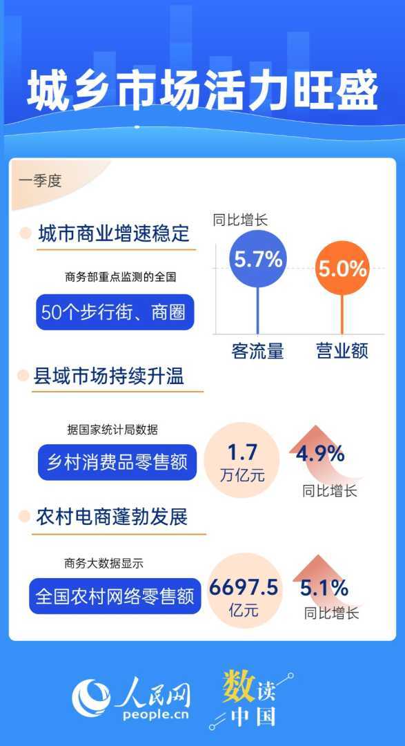 商务部发布数据显示,今年一季度消费市场总体实现平稳开局,批发和零售业取得良好开局,为扩大国内需求、畅通国民经济循环提供有力支撑,展现了消费市场的强大韧性和潜力。