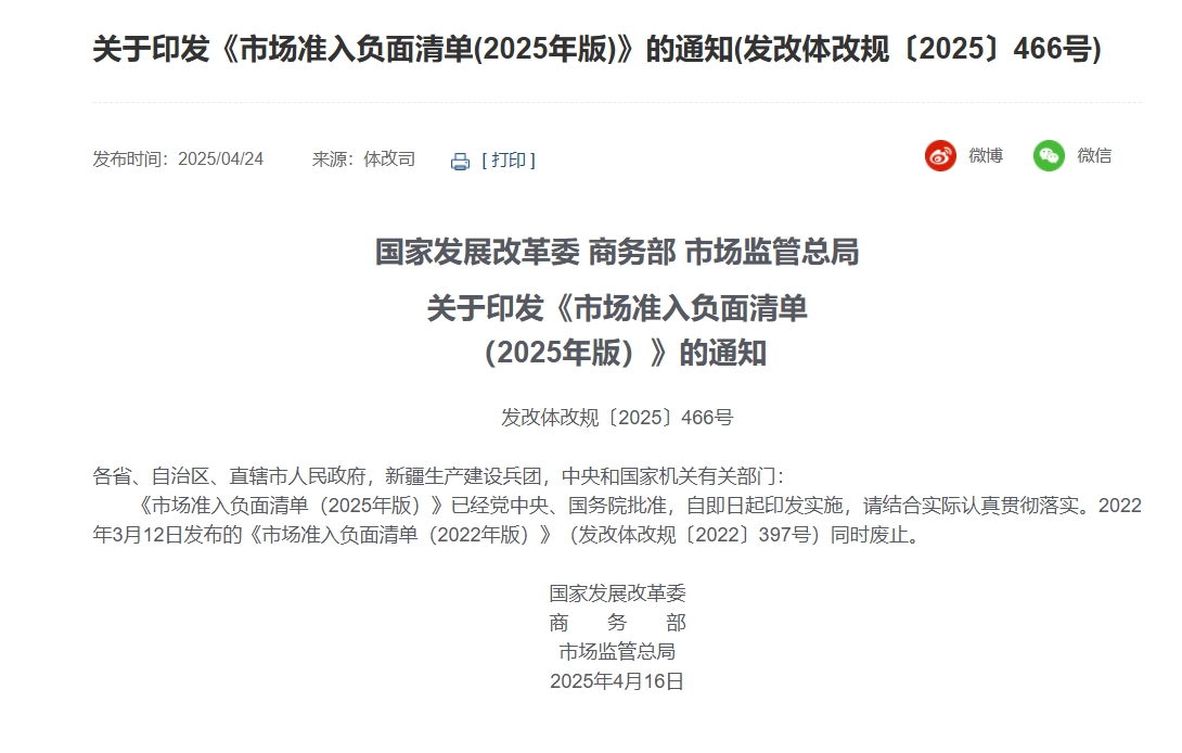 《市场准入负面清单(2025年版)》正式发布,激发市场活力
