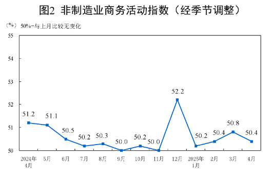 4月份,非制造业商务活动指数为50.4%,虽较上月微降0.4个百分点,但仍高于临界点,显示非制造业继续保持扩张态势。